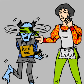 Let the prisoner go, but first you loot him, blindfold him, place a sign around his neck and spin him around until he is dizzy.